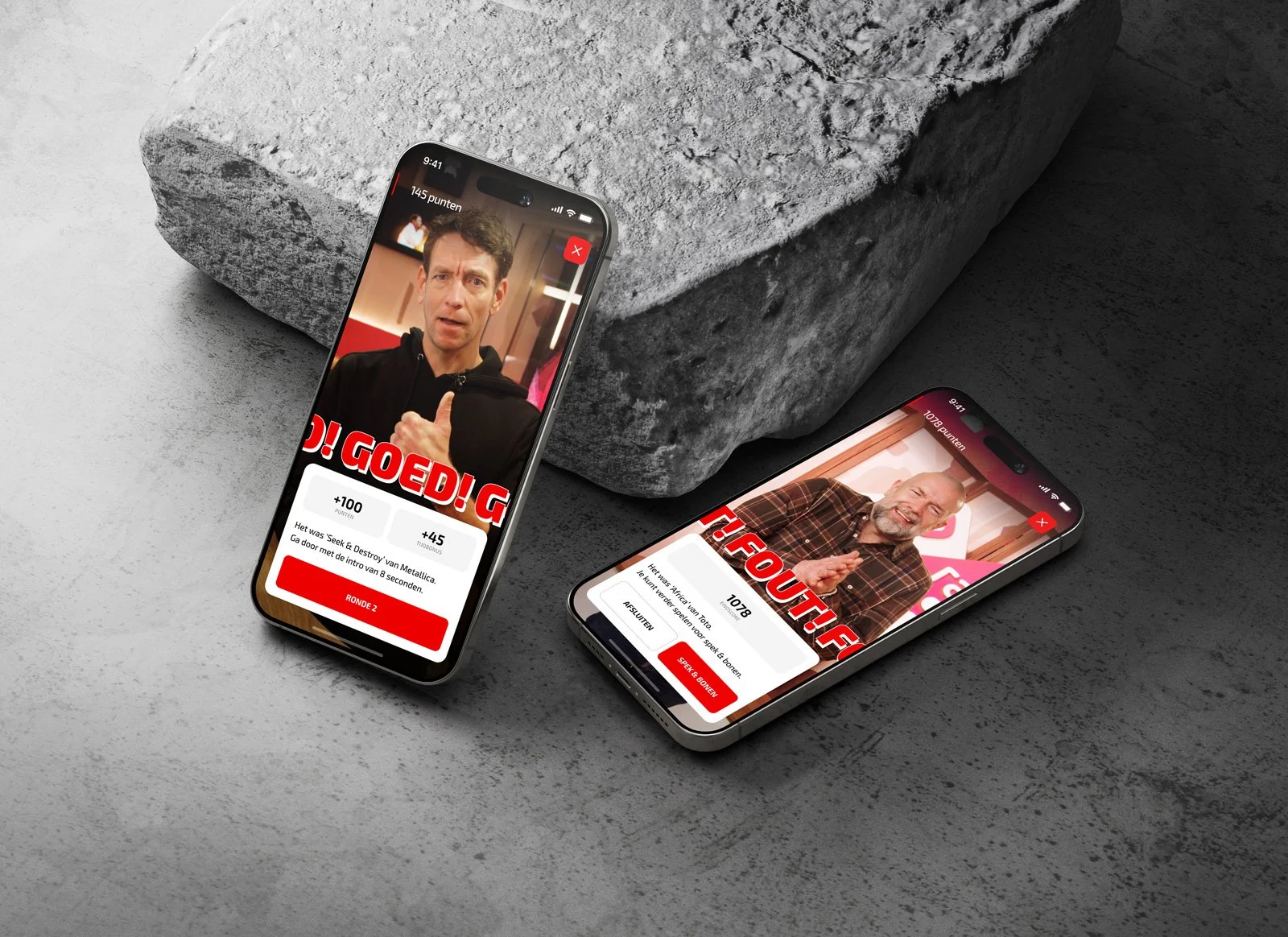 The Introrally, a popular Dutch radio game from Jan-Willem Start Op! now has a mobile app, bringing the excitement of the morning guessing game to users anytime, anywhere. In the original game, players must identify five music intros, each one shorter than the last—starting at 10 seconds and ending at just 2. The challenge was to transform this live radio game into a digital experience that captures the thrill of the radio game while offering a dynamic and playful digital experience.