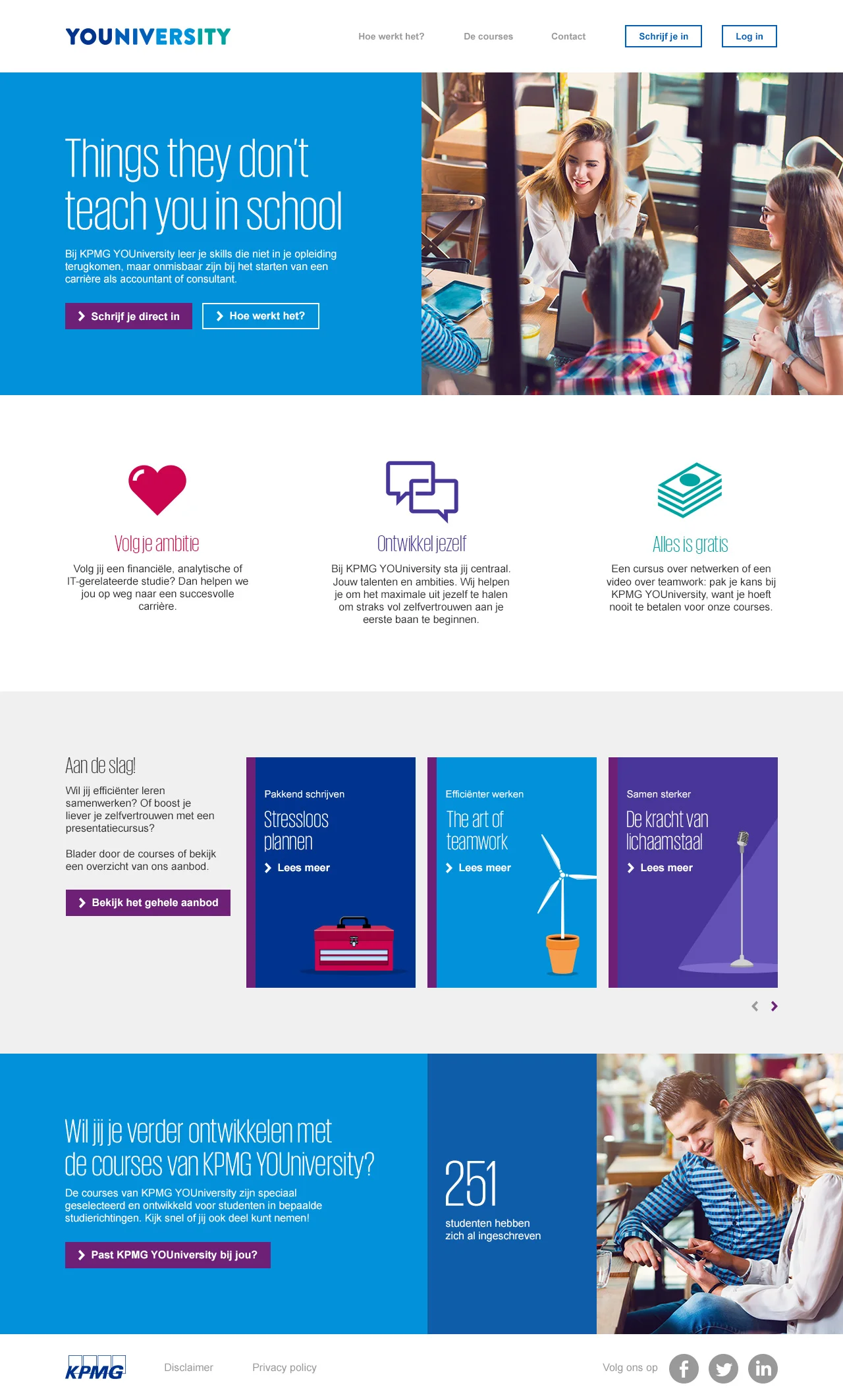 This is an online platform where students can take courses to learn skills they wouldn't learn in school. All these courses are for free if you give some information about yourself to KPMG. This way KPMG can filter high potentials and select them to join the company. Maybe for an internship or even a full time job.
